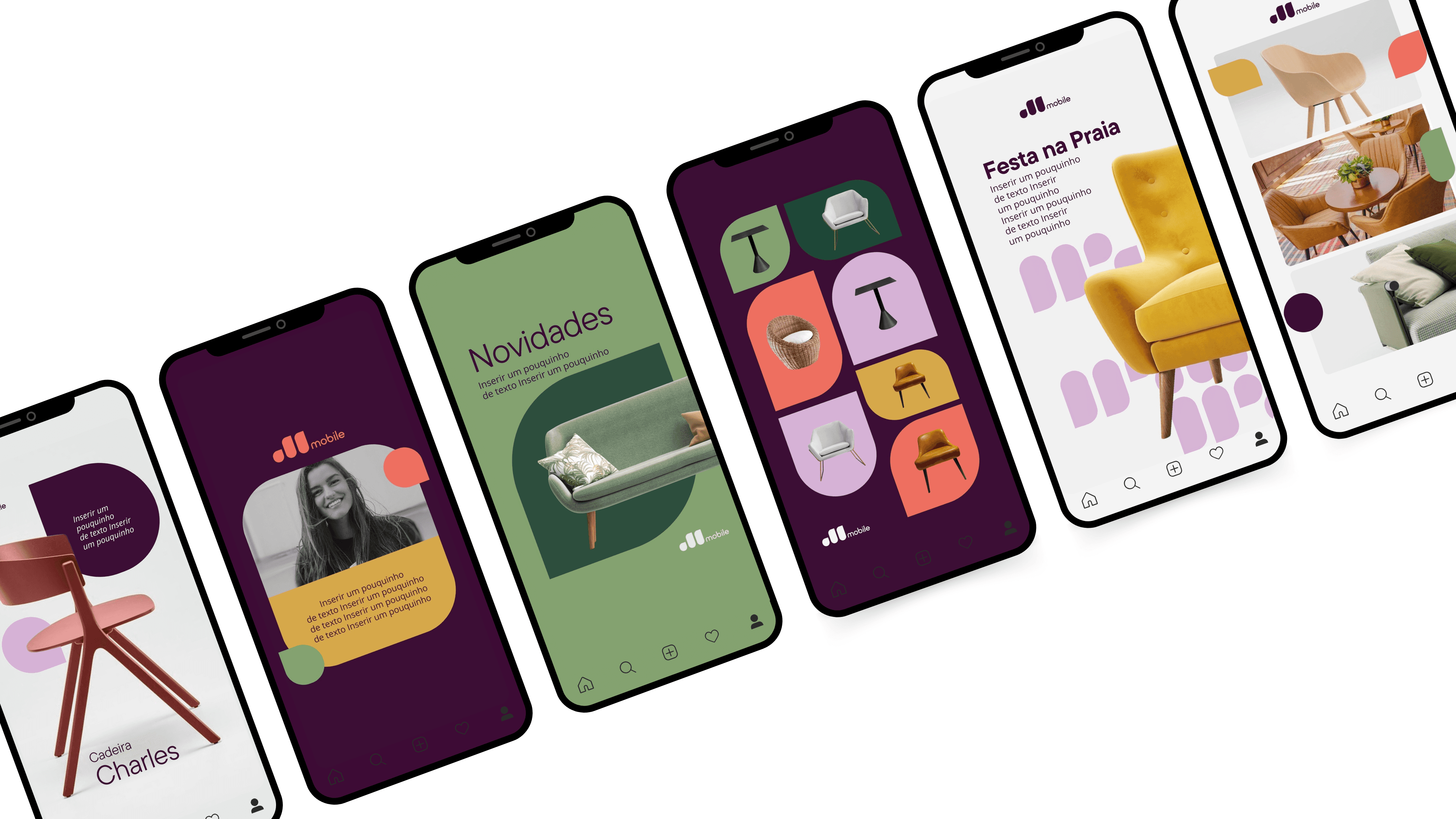 Redesenhamos o posicionamento da marca e criamos uma identidade verbal próxima e criativa, alinhada ao DNA da Mobile. A identidade visual ganhou força com novas cores, tipografia e grafismos, transmitindo elegância, modernidade e a ideia de movimento. O slogan — Móveis versáteis, composições criativas — sintetiza o novo momento.